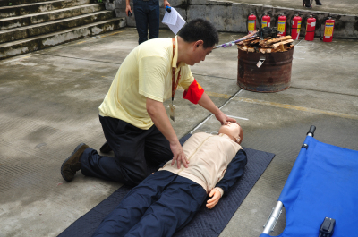 教练示范紧急救人方法