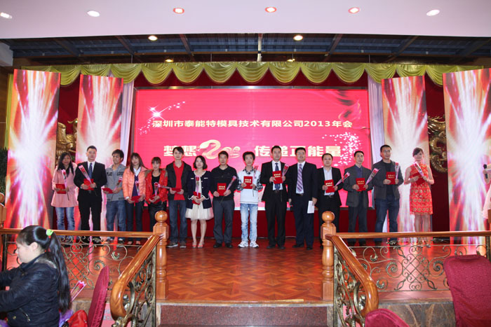 2013年元月30日,公司组织了“梦想2013 传递正能量” 2012泰能特公司年会 ,会上颁发了:2012年度优秀员工、先进集体、模具制造奖。