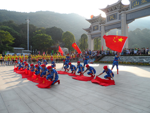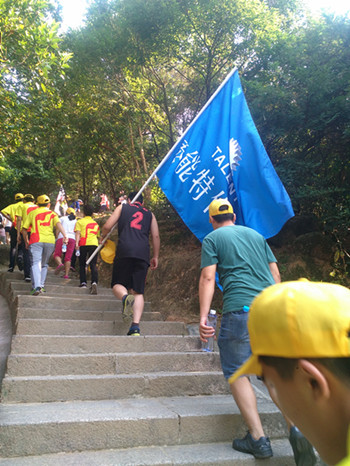 看完一系列精彩专业的表演来到羊台山参加活动的人们都一直连连拍手叫好,看着声势浩大的表演让我们着实振奋人心,看完专业表演后,我们各自背上背上行囊,举着公司旗帜,像山顶前进。