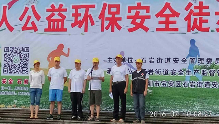 7月10日上午,石岩街道在石岩影剧院广场隆重举办2016年“千人公益环保安全徒步行”活动,组织辖区500名企业负责人、安全管理人员、从业人员和街道、社区安监系统工作人员、义工、社区兼职消防队员共1000人参加,本次活动旨在加强辖区企业安全管理队伍素质建设,强化沟通交流和丰富业余生活。