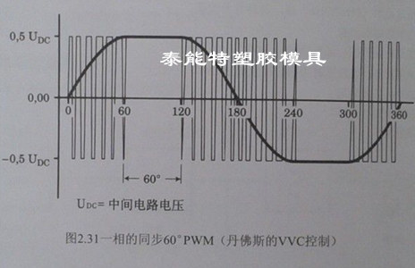 逆变器:同整流器相反,逆变器是将直流功率变换为所要求频率的交流功率,以所确定的时间使6个开关器件导通、关断就可以得到3相交流输出。以电压型pwm逆变器为例示出开关时间和电压波形。