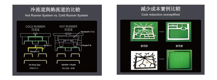 通过加热的方式使流入行腔的塑胶处于熔融的状态,直至产品成型;